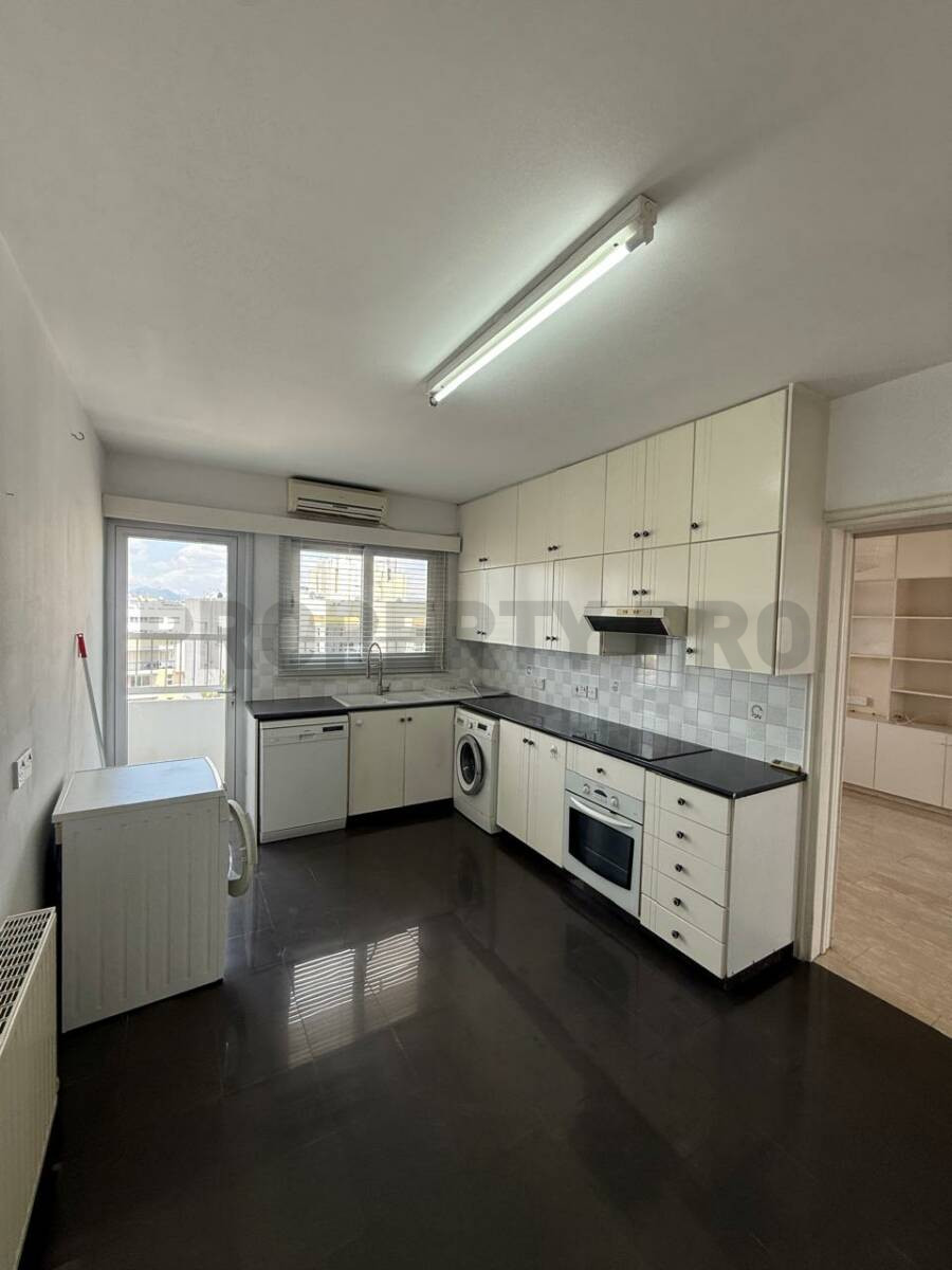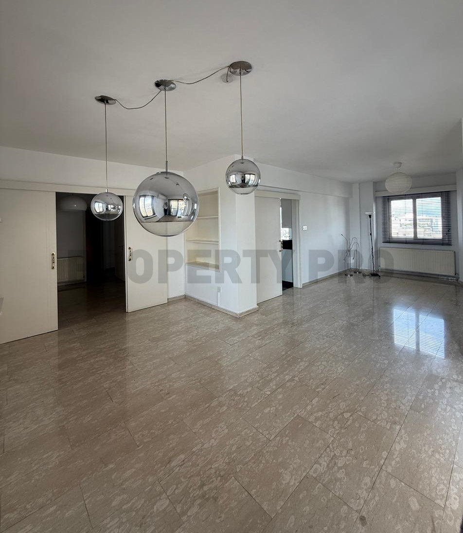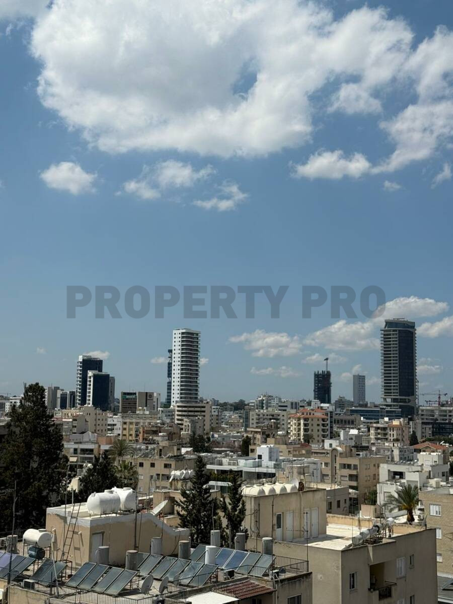 The apartment is located in an elevated building, offering unobstructed views across the whole of Nicosia from above.